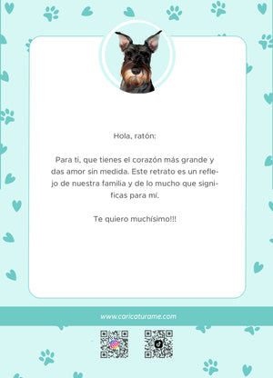 ¡Sorprende a tus seres queridos con esta tarjeta personalizada única y encantadora! Nuestra tarjeta incluye el retrato de la mascota en pequeño y el mensaje que tú elijas. Perfecta para dedicar unas palabras llenas de cariño a esa persona tan especial.